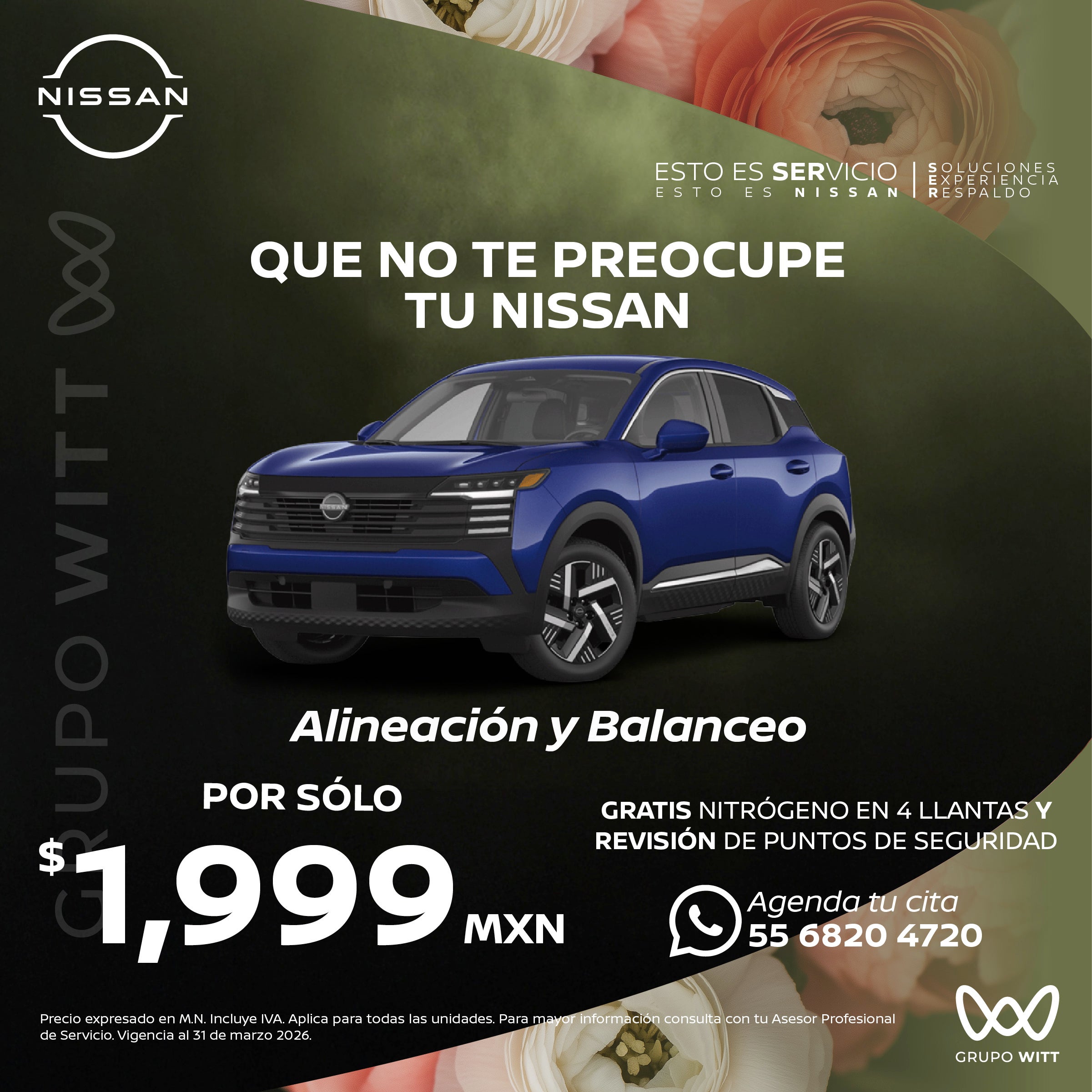 Precio expresado en M.N. Incluye IVA. Aplica para todas las unidades. Para mayor información consulta con tu Asesor Profesional de Servicio. Vigencia al 31 de marzo 2026.