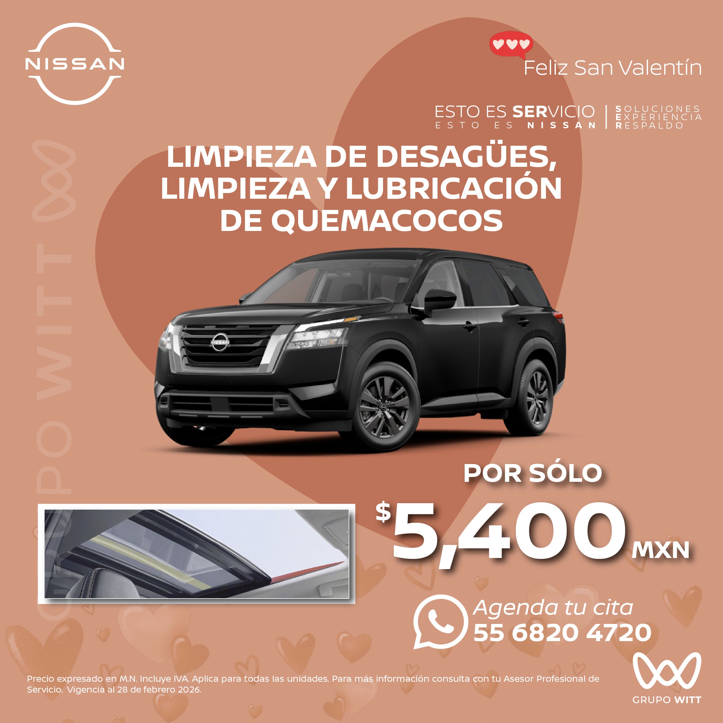 Precio expresado en M.N. Incluye IVA. Aplica para todas las unidades. Para más información consulta con tu Asesor Profesional de Servicio. Vigencia al 28 de febrero 2026.